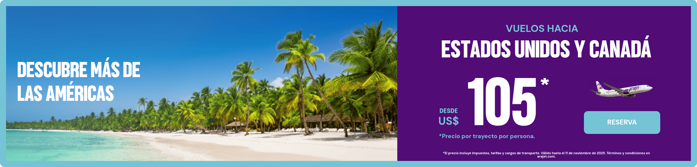 • La Promoción queda sujeta a todos los términos y condiciones de Arajet disponibles en www.arajet.com, sección “Condiciones de Transporte”.
