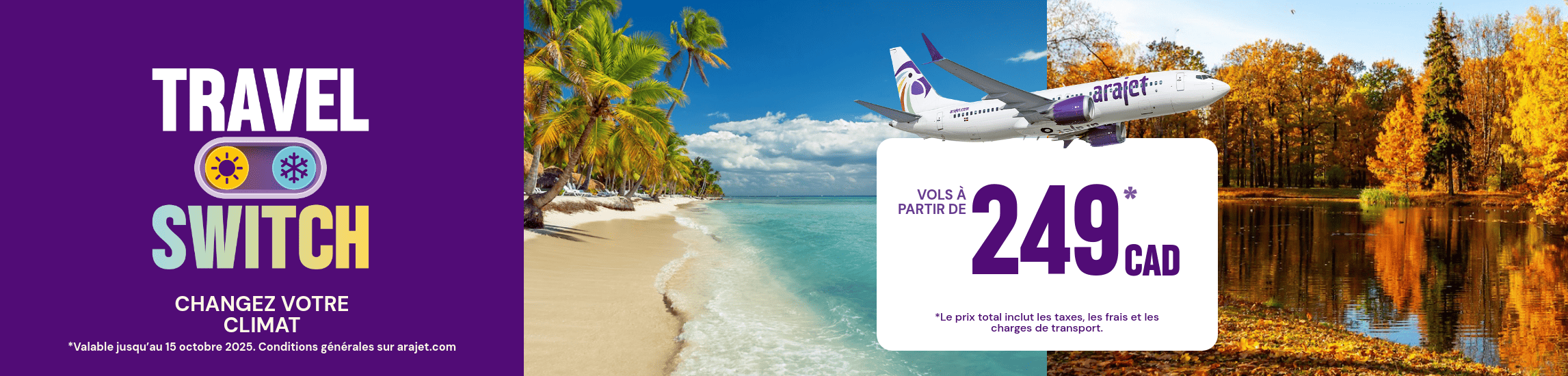 - La promotion est soumise à toutes les conditions générales d'Arajet disponibles sur www.arajet.com, section "Conditions de transport".